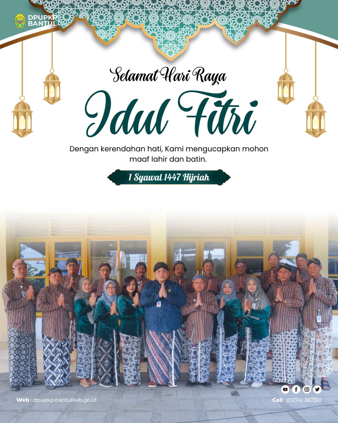 “Atas nama keluarga besar DPUPKP Bantul, kami mengucapkan Selamat Hari Raya Idul Fitri 1447 Hijriah. Mohon maaf lahir dan batin,” demikian disampaikan dalam pernyataan resmi.